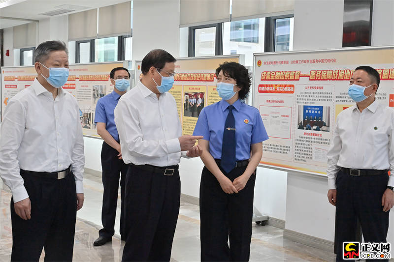 6月14日,最高人民检察院党组书记、检察长应勇率最高检调研组来到重庆市检察院第五分院了解检察机关服务成渝地区双城经济圈建设情况。程丁 摄
