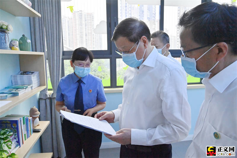 6月14日,最高人民检察院党组书记、检察长应勇率最高检调研组来到全国首个省级未成年被害人“一站式”询问、救助中心,重庆市“莎姐”未成年人关爱中心了解相关工作。程丁 摄